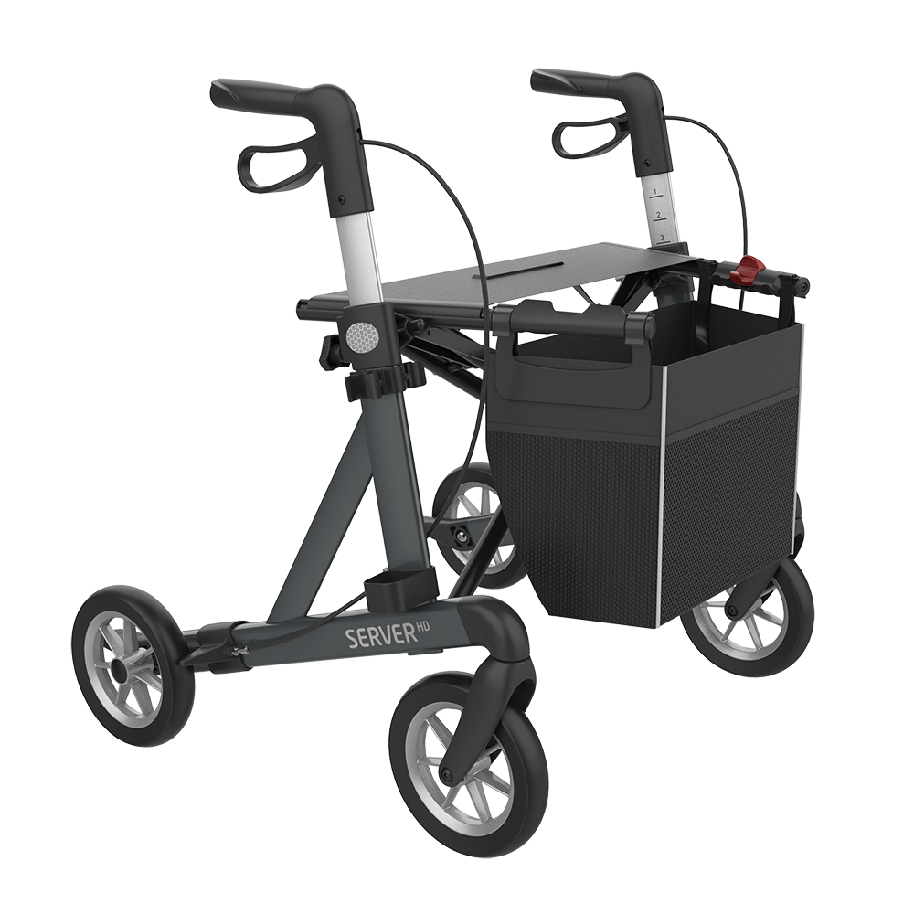 SERVER HD è stato progettato appositamente per gli utenti che necessitano di un modello più grande. Il rollator combina un design essenziale e funzioni ergonomiche intelligenti, offrendo sicurezza e comfort agli utenti durante l’utilizzo, il trasporto o il trasporto del rollator. Per una maggiore sicurezza, il sistema di sicurezza brevettato “Click & Safe” garantisce il sollevamento, il trasporto e il trasporto in sicurezza del rollator, impedendone l’apertura una volta piegato. SERVER HD è disponibile con un’ampia gamma di caratteristiche e accessori, tra cui le popolari ruote in TPE o le ruote morbide ammortizzanti.